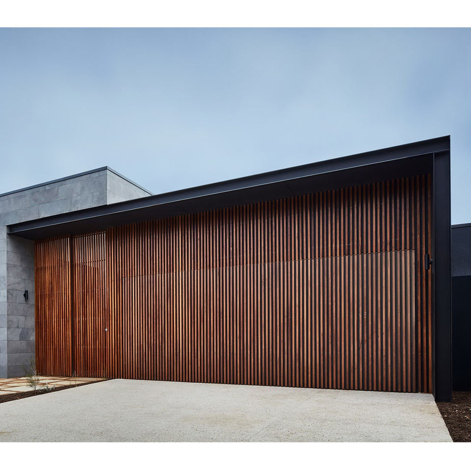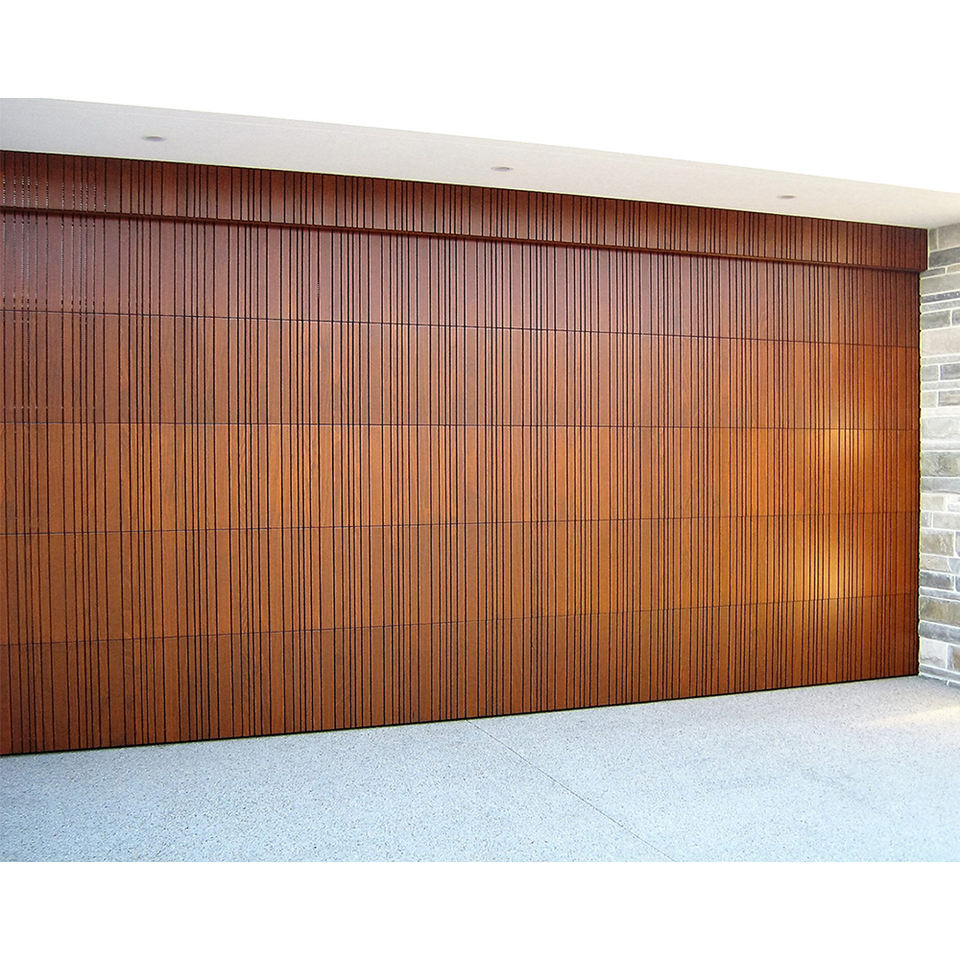 Porte de garage électrique en bois massif invisible à barres verticales en chêne américain de style nouveau avec moteur