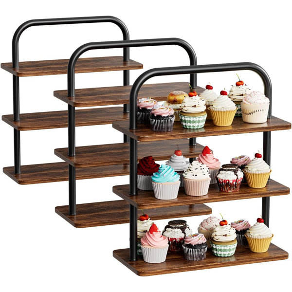New Style Wooden & Metal Cake Stand Premium Quality Black Coated Metal Stand Display Dessert Cup Cake Serving Stand at Best Rate
