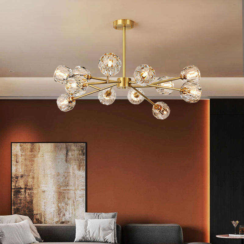 Nouveau Style décor à la maison lumières réglables hôtel salle à manger luxe or cristal boule de verre suspension
