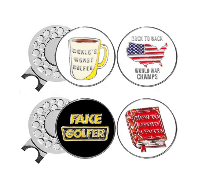 Nouveaux styles marqueur de balle personnalisé pince à chapeau de golf métal blanc en vrac marqueurs de balle de golf à aimant personnalisé