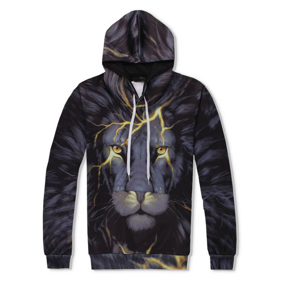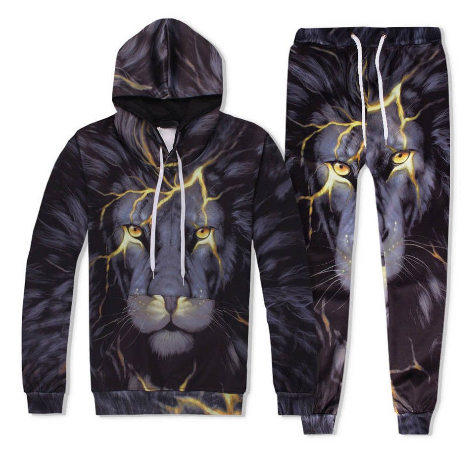 Nouvel ensemble de survêtement élégant personnalisé avec logo par sublimation, sweat à capuche zippé et pantalon de jogging, 2 pièces, pour homme, imprimé lion