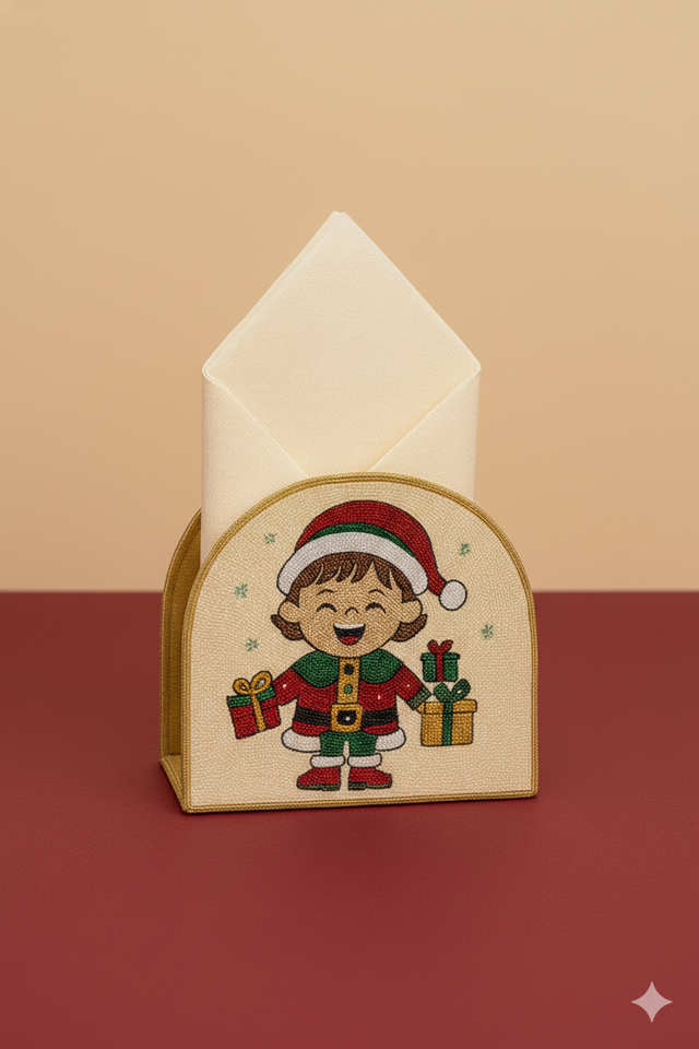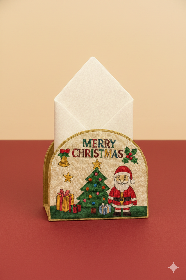 Nouvelle pochette porte-serviettes de Noël élégante en perles faites à la main, décoration de table en tissu brodé à la main de luxe, événements festifs