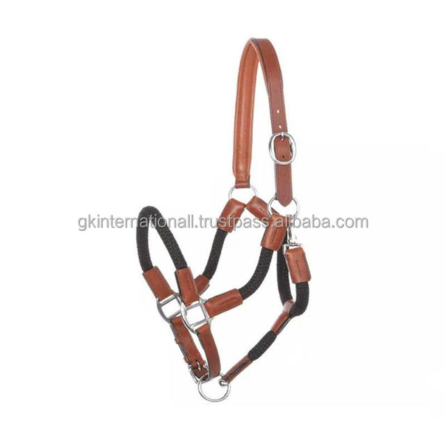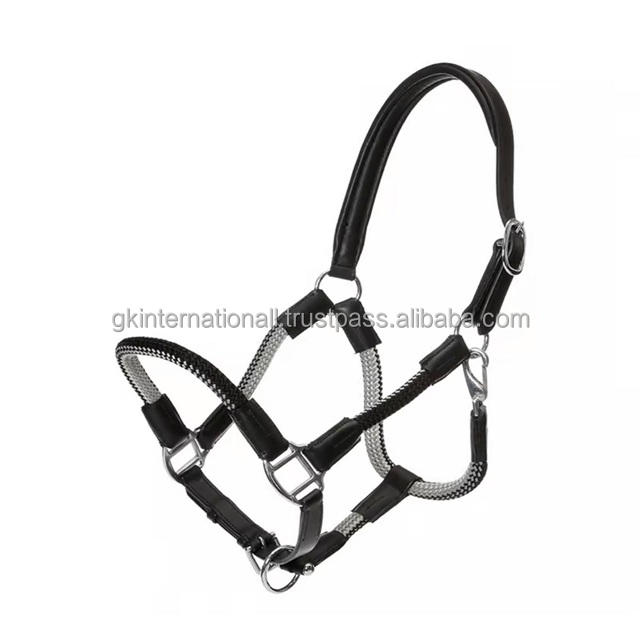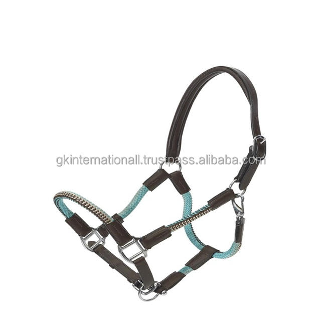 Nouvelle bride de cheval en cuir de qualité supérieure, élégante, avec cordon en cuir, réglable, rembourrée, corde en nylon bleue, tailles personnalisées