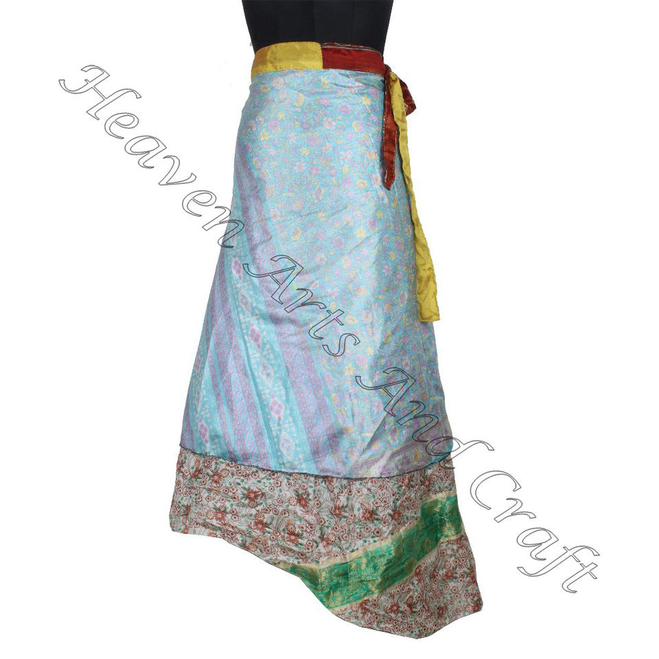Nouveau élégant deux couches réversible soie Sari magique longues jupes portefeuille réversible soie magique 38 pouces longue jupe portefeuille licou Tube