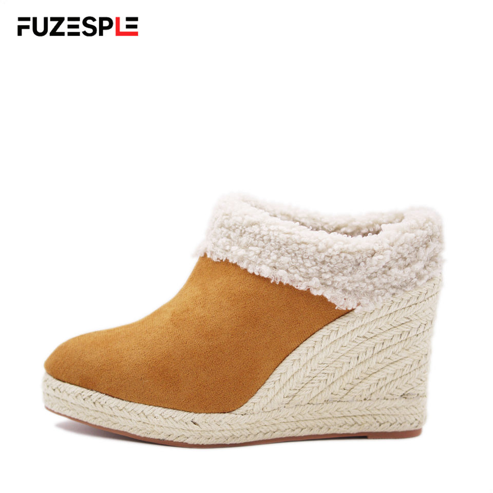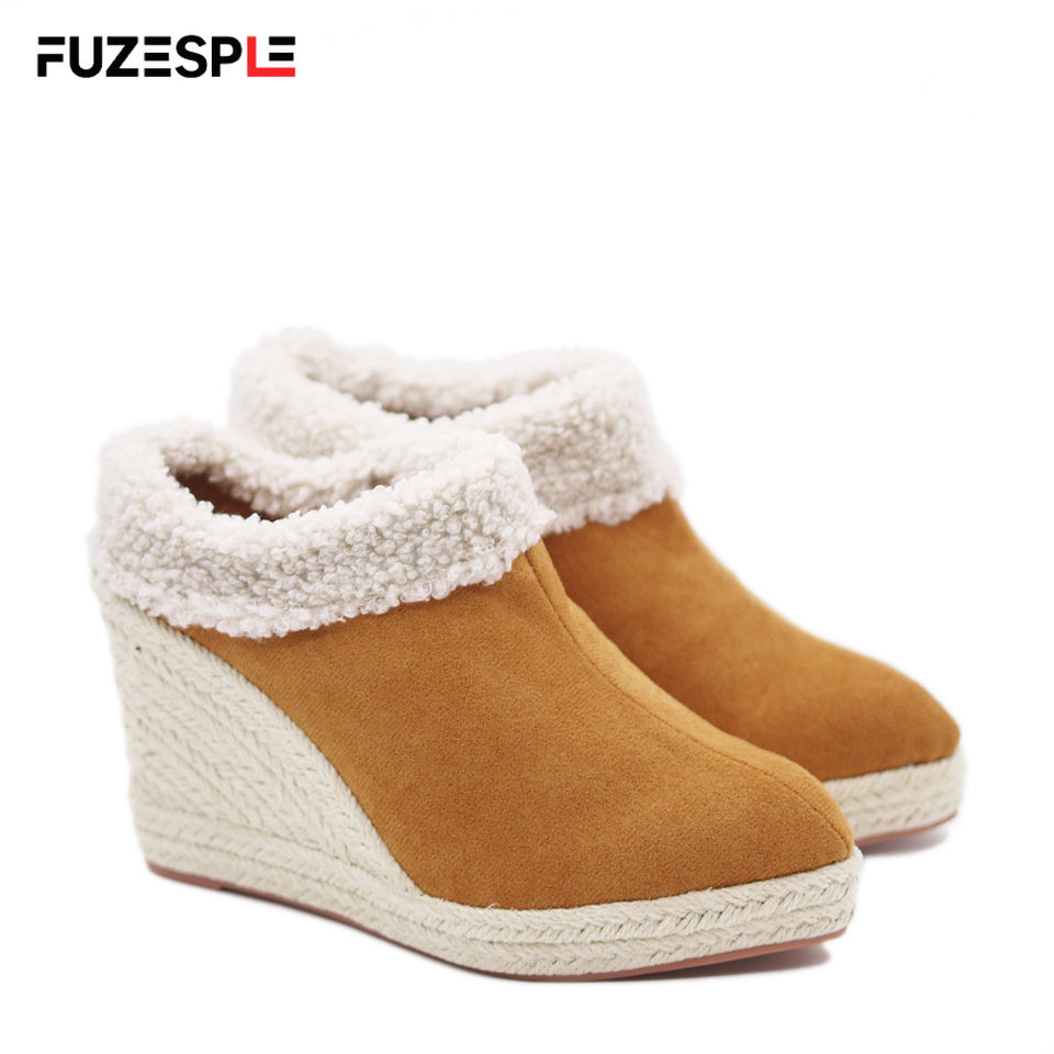 Nouvelles sandales compensées à bout pointu pour femme, en daim, semelle en caoutchouc, talon haut 9 cm, style espadrille, collection été-automne