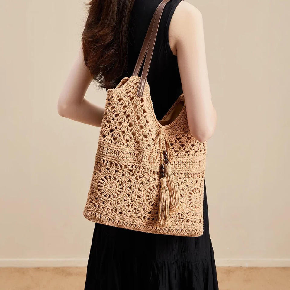 New Summer Beach Cotton Crochet Bag Bohemian Handmade Hollow Out Flower Shopping Shoulder Crochet Bag for Women