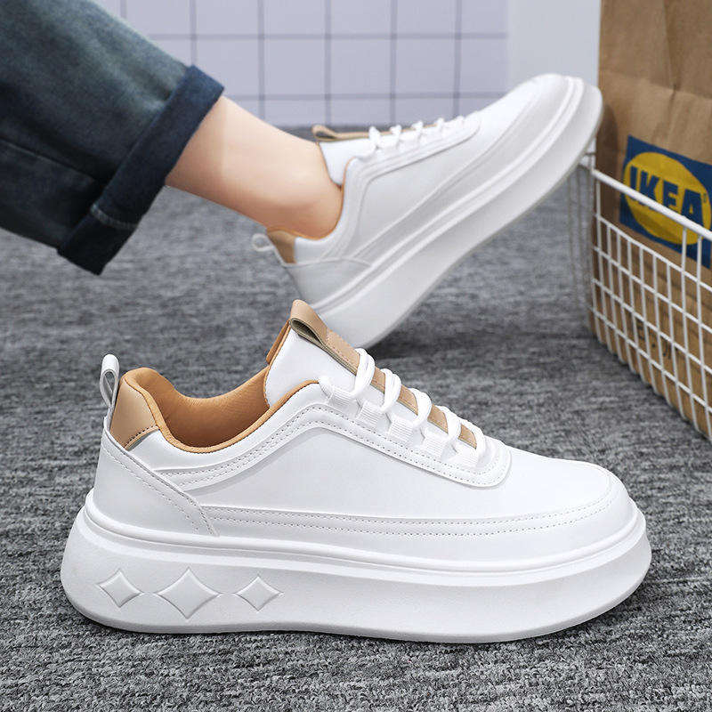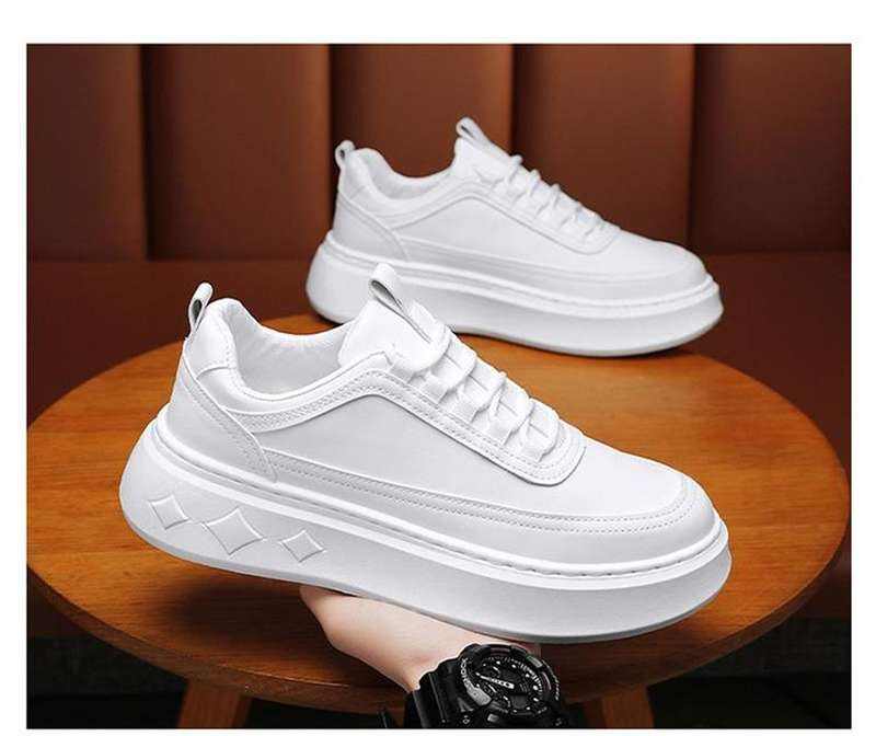 Nouvelles Chaussures Décontractées et Respirantes Blanches pour Hommes, Style Sportif et Tendance, Idéales pour le Skateboard et la Marche, avec Rehaussement Intégré