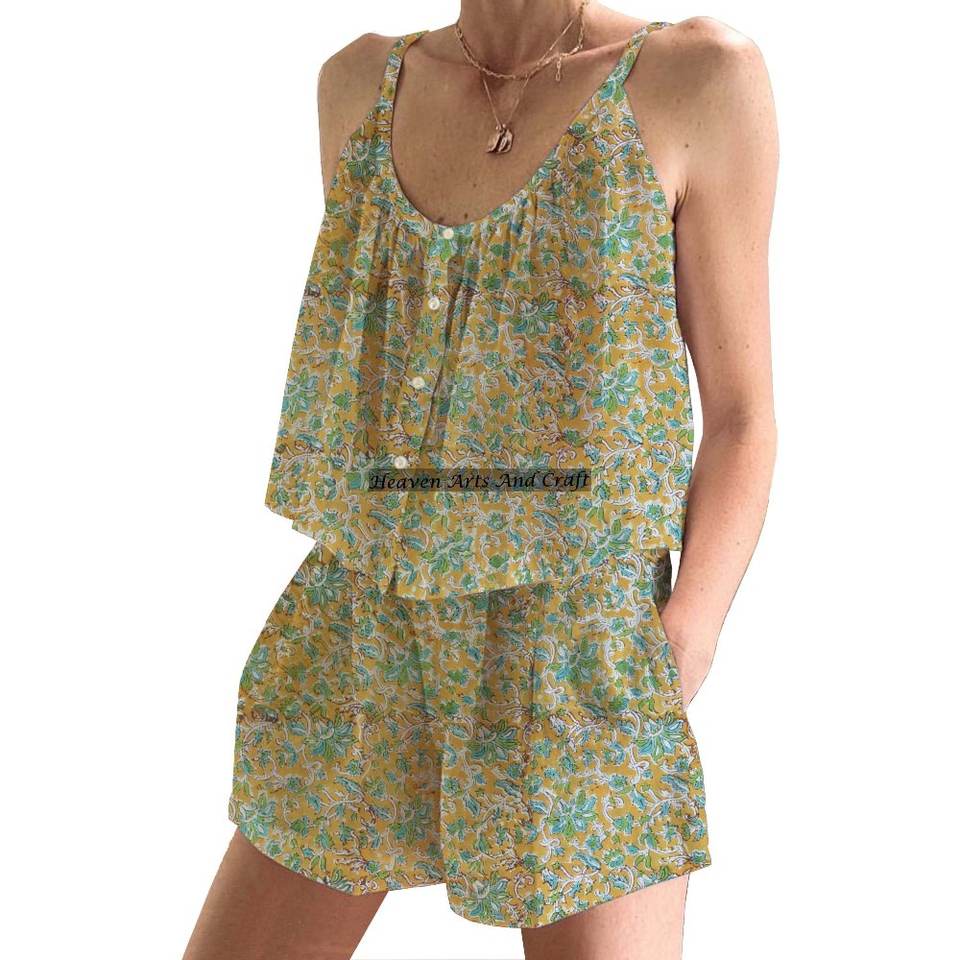 Product name:100% Cotton Printed Shorts Pajama Set