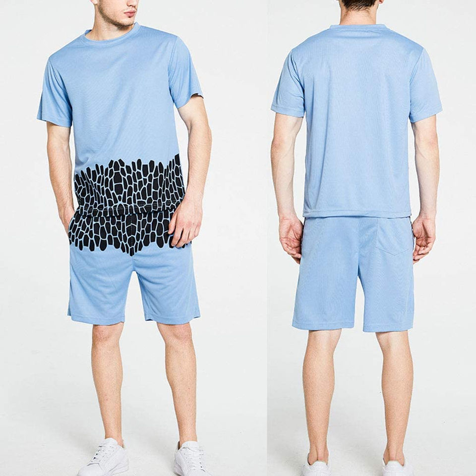 Nouveau été hommes ensemble court respirant costume à manches courtes t-shirt et short deux pièces respirant ensemble vêtements décontractés