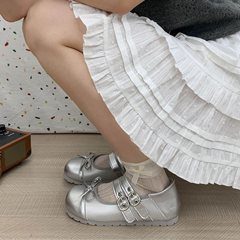Nouveau Style d'été mignon Style japonais ballerines pour femmes français argent Mary Jane chaussures
