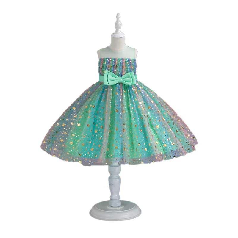 Nouvelle robe de soirée princesse en satin à paillettes et dentelle pour filles, lavable, respirante, sans manches, à plusieurs couches, pour l'été