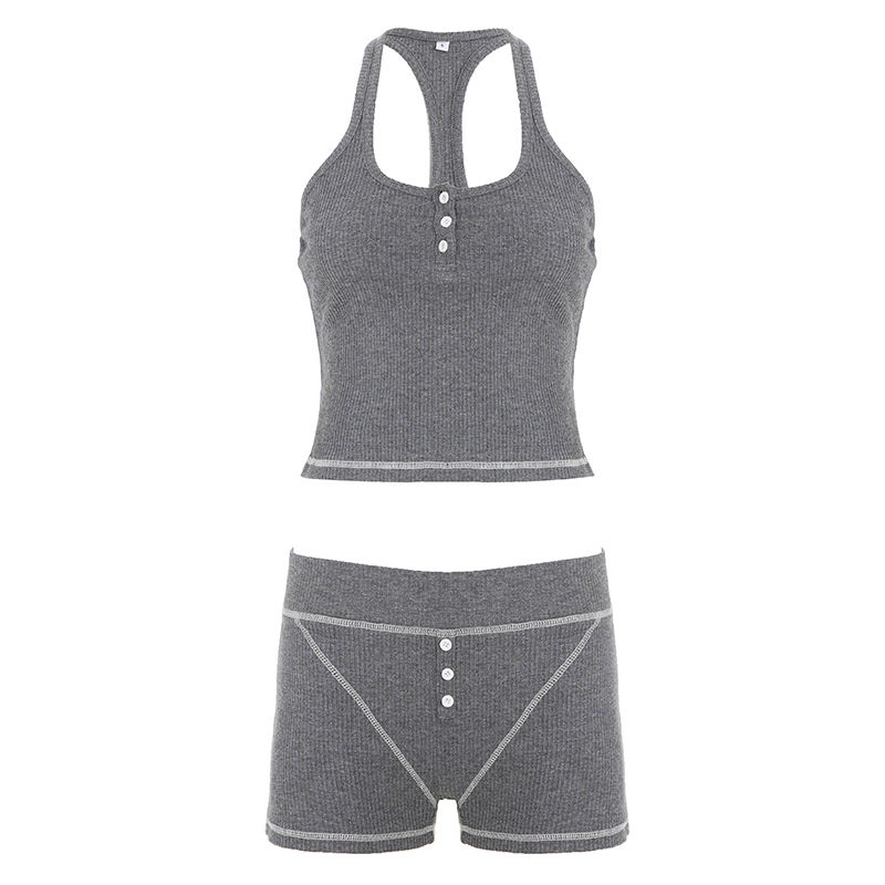 Nouvel ensemble deux pièces côtelé pour femme, style sport décontracté, avec débardeur et short à surpiqûres contrastées, vente en gros