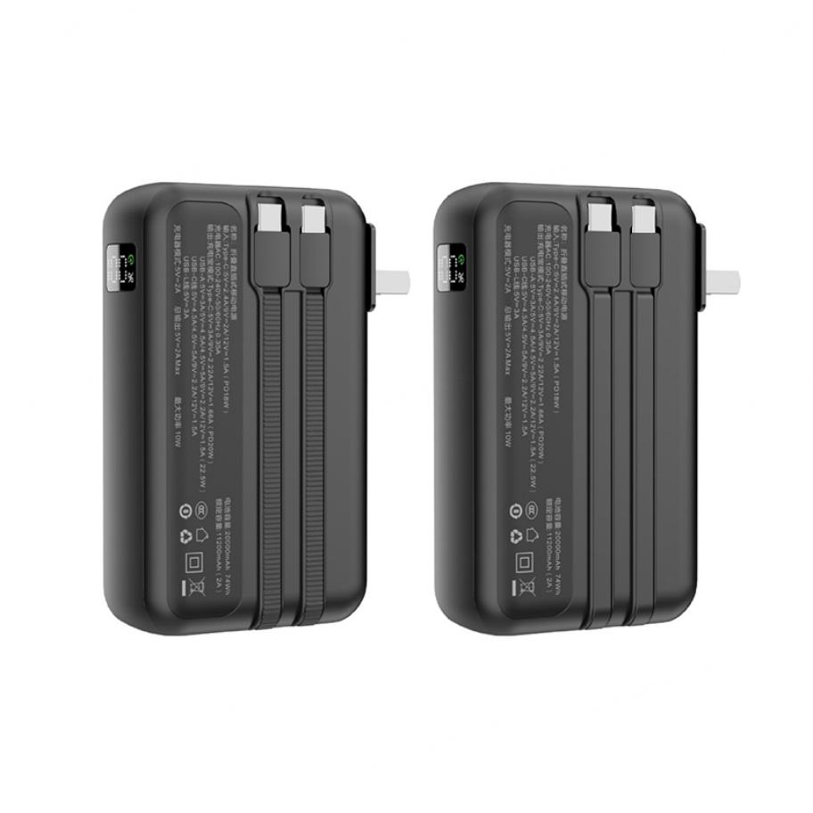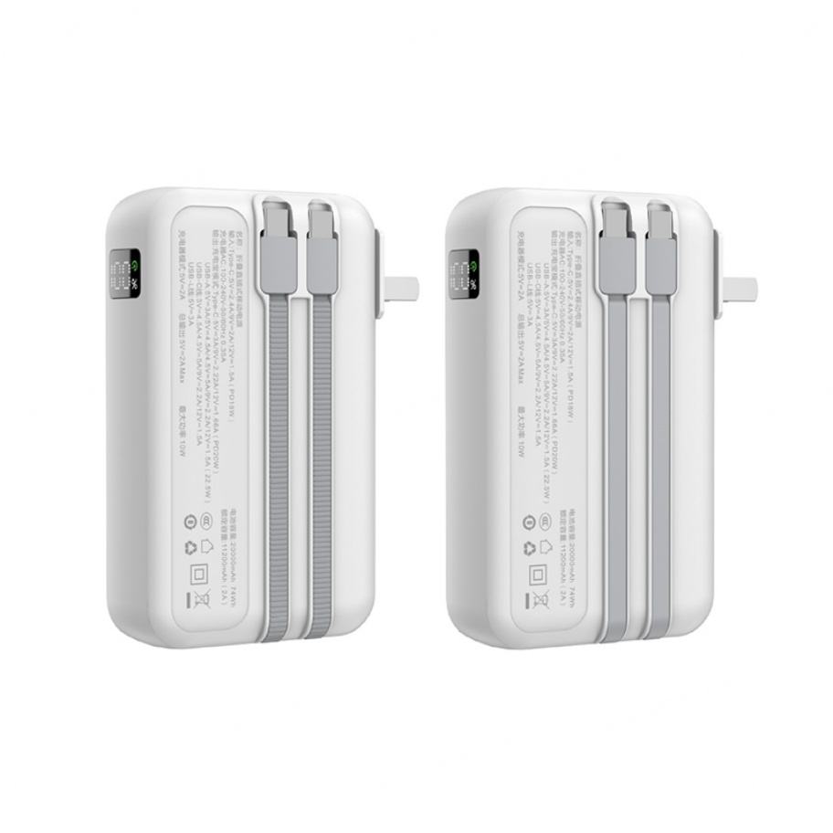 Nouvelle batterie externe multifonctionnelle à charge super rapide 20000mAh grande capacité avec câbles