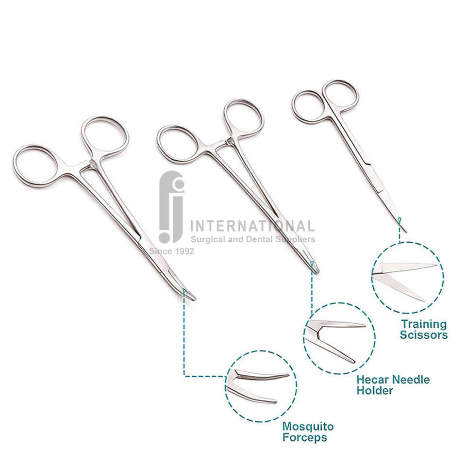 Nouveau kit d'entraînement manuel et réutilisable en acier inoxydable personnalisé pour la pratique des sutures chirurgicales, pour étudiants en médecine, ensemble d'instruments certifiés CE