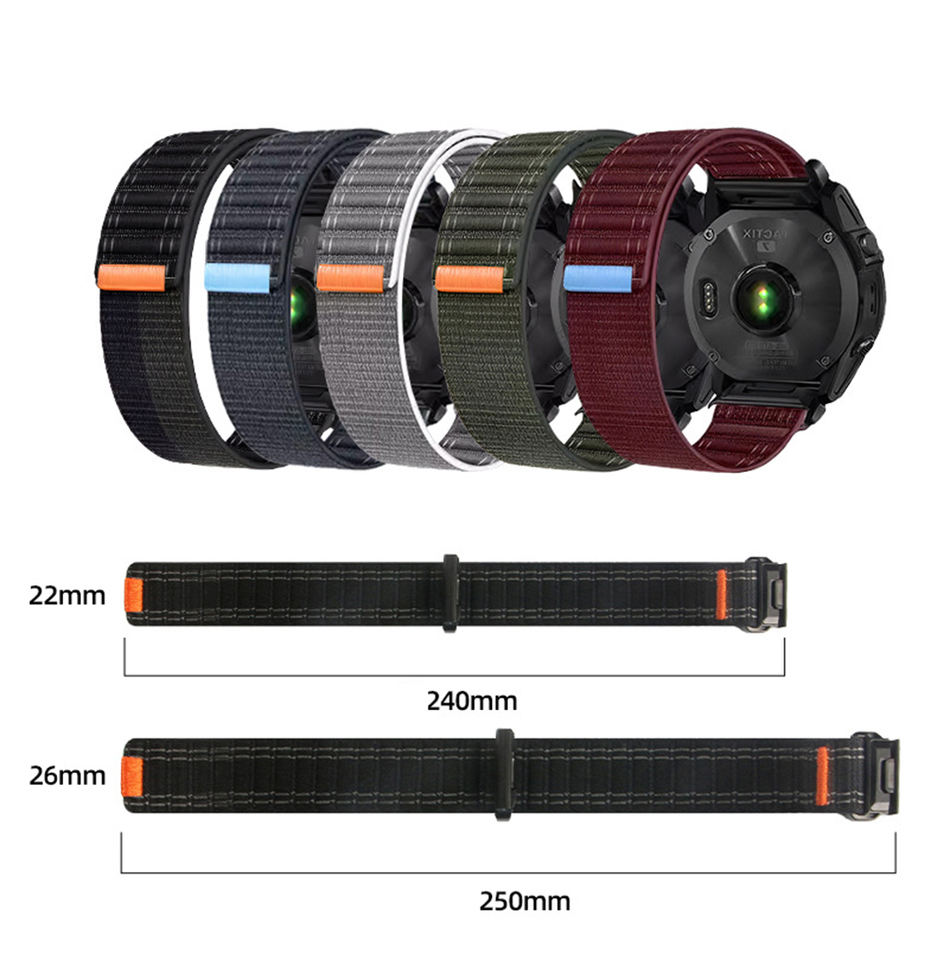 Nouveau bracelet de montre en nylon tactique 22 mm 26 mm, boucle en nylon, bracelet de sport pour Garmin Fenix 7pro Fenix 8 Quickfit