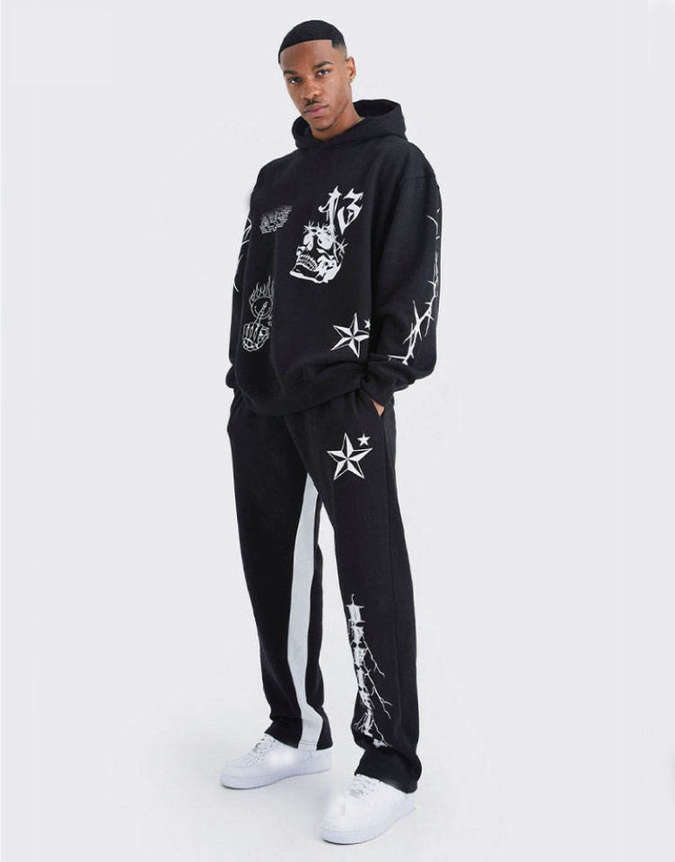 Nouvel ensemble sweat-shirt et pantalon à capuche personnalisé pour hommes grands et corpulents, imprimé à l'écran, sweat-shirt à capuche et pantalon de survêtement, tenue de sport