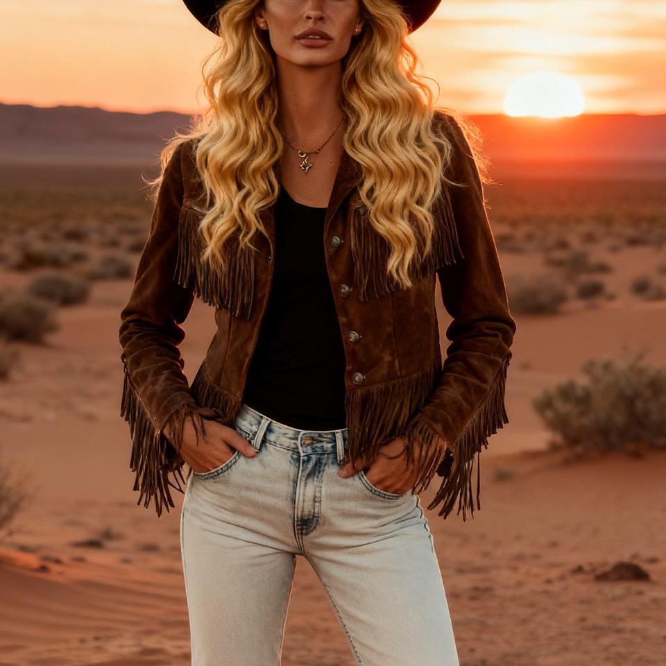 Nouvelle veste en daim à franges, couleur unie, col à revers, coupe courte et ajustée, manteau pour femme, Sehe Fashion