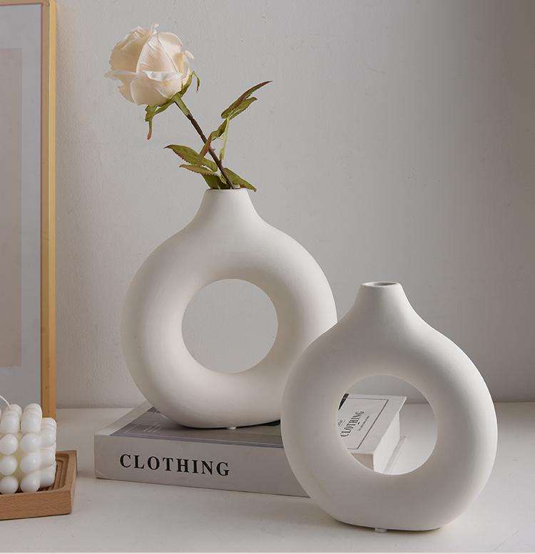 Nouveau vase en céramique blanc en forme de O 2026, fait main, durable, moderne, pour mariage, décoration intérieure, pot de fleurs, jardinière, vase de table