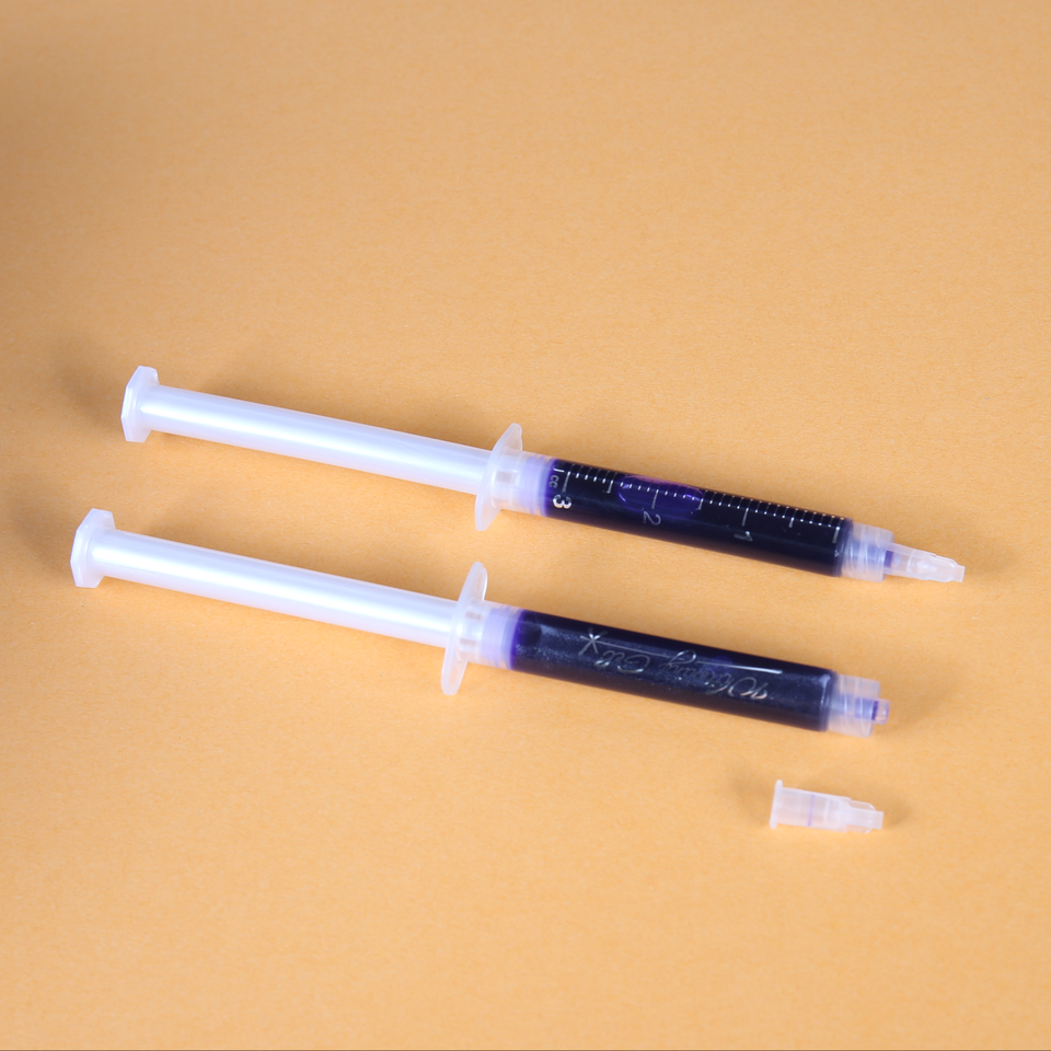 Nouvelle technologie Correcteur de couleur violet Gel blanchissant pour les dents à base de peroxyde en seringue, pas de dentifrice violet V34