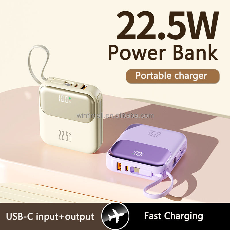 Ultra Mince, Charge rapide, Haute Capacité, Avec câble, Portable, Centrale électrique, Location Batterie Externe, LED D'affichage, 2 en 1 chargeur rapide batterie externe, Pour extérieur, Centrale électrique portative