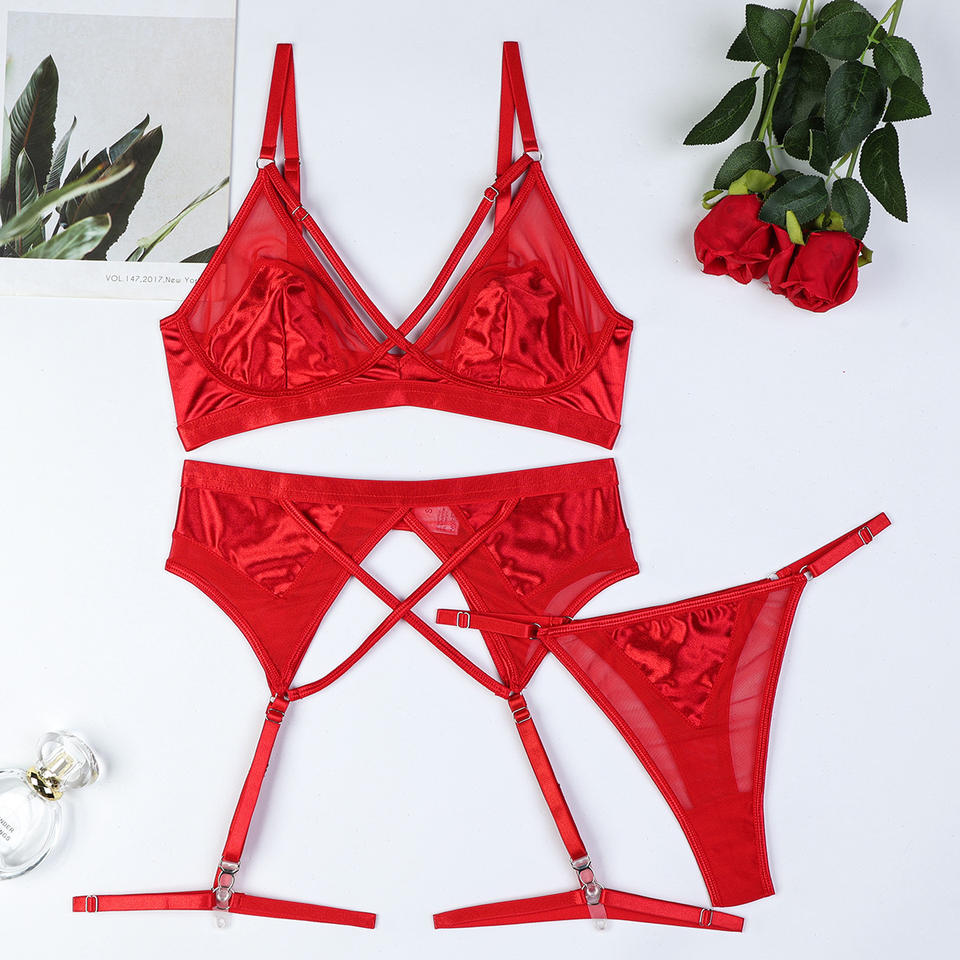 Nouvel ensemble de lingerie transparente fine pour femmes, ensemble sexy de soutien-gorge et culotte à effet push-up, trois pièces
