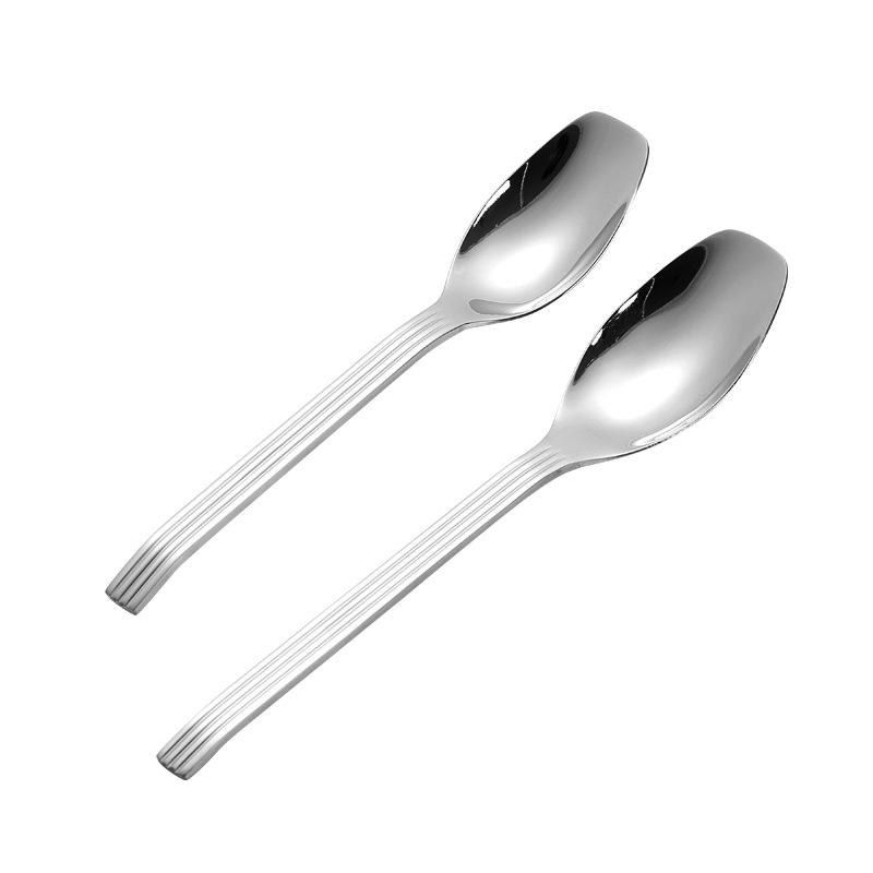 Nouvelle cuillère à trois lignes en acier inoxydable 304, manche rayé durable, cuillère à soupe et à riz pour adultes, vaisselle de table