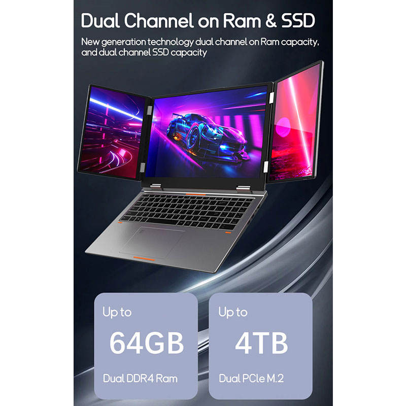 Nouvel Ordinateur Portable Professionnel à Trois Écrans 16 pouces + 2x 10.5 pouces, Intel Core I7, 64 Go RAM DDR4, SSD 4 To Neuf