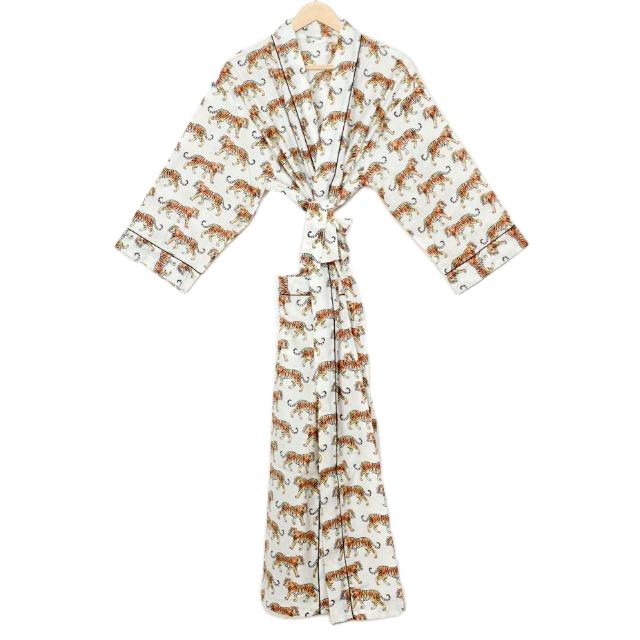 Kimono d'été en coton blanc Robe de maternité Nouveau tigre imprimé Vêtements de nuit thermiques pour la plage Veste de demoiselle d'honneur Taille libre