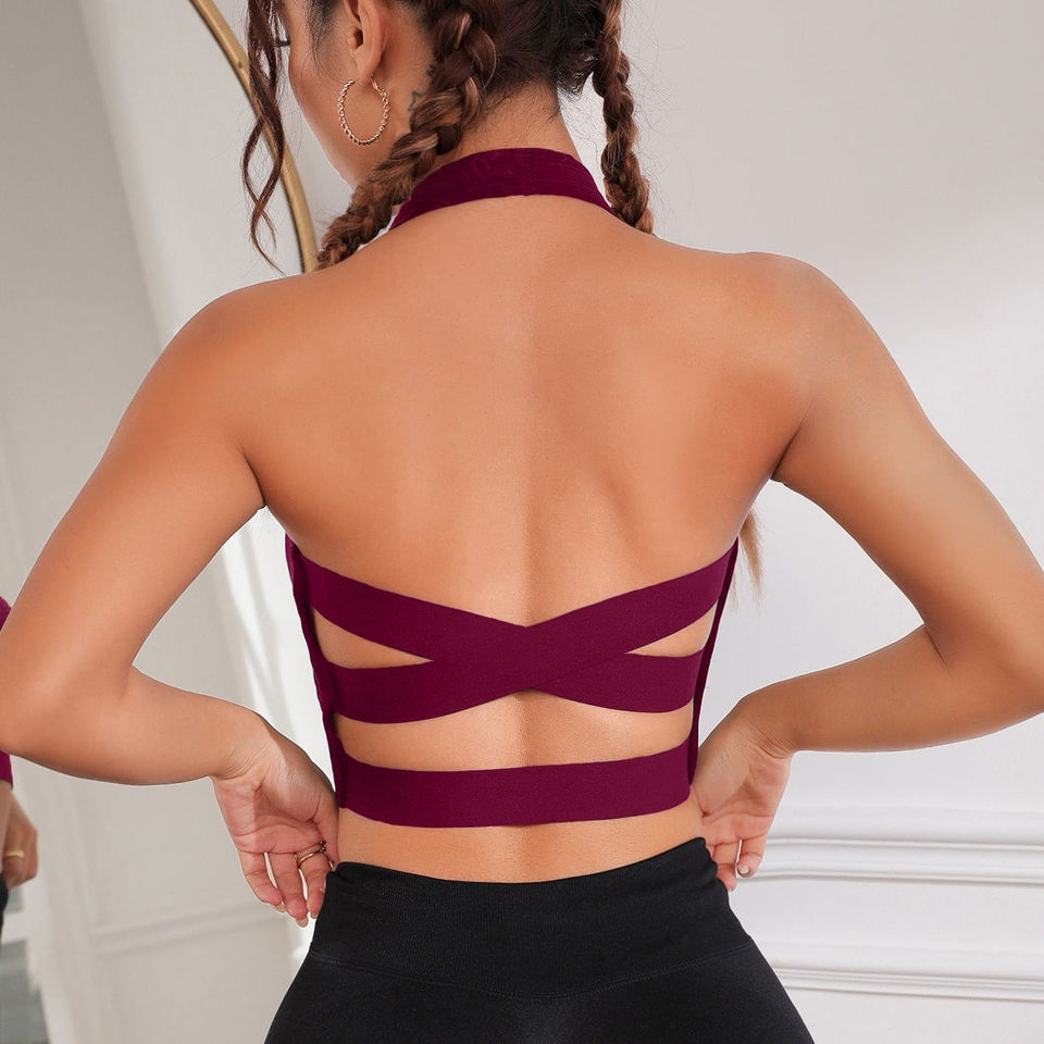 Women's High for Impact Cross Beauty Sport Bra New Tight Tops with Seamless Technology Halter Neck Back Shockproof Gym Wear