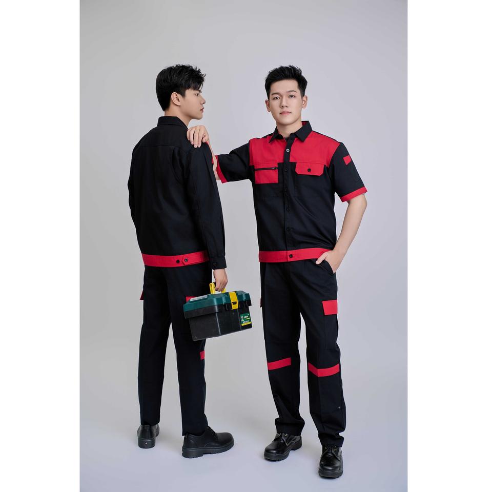 Nouvel ensemble de vêtements de travail de sécurité haute visibilité pour femmes FMF, noir et rouge, à manches courtes, respirant et confortable, fabriqué au Vietnam