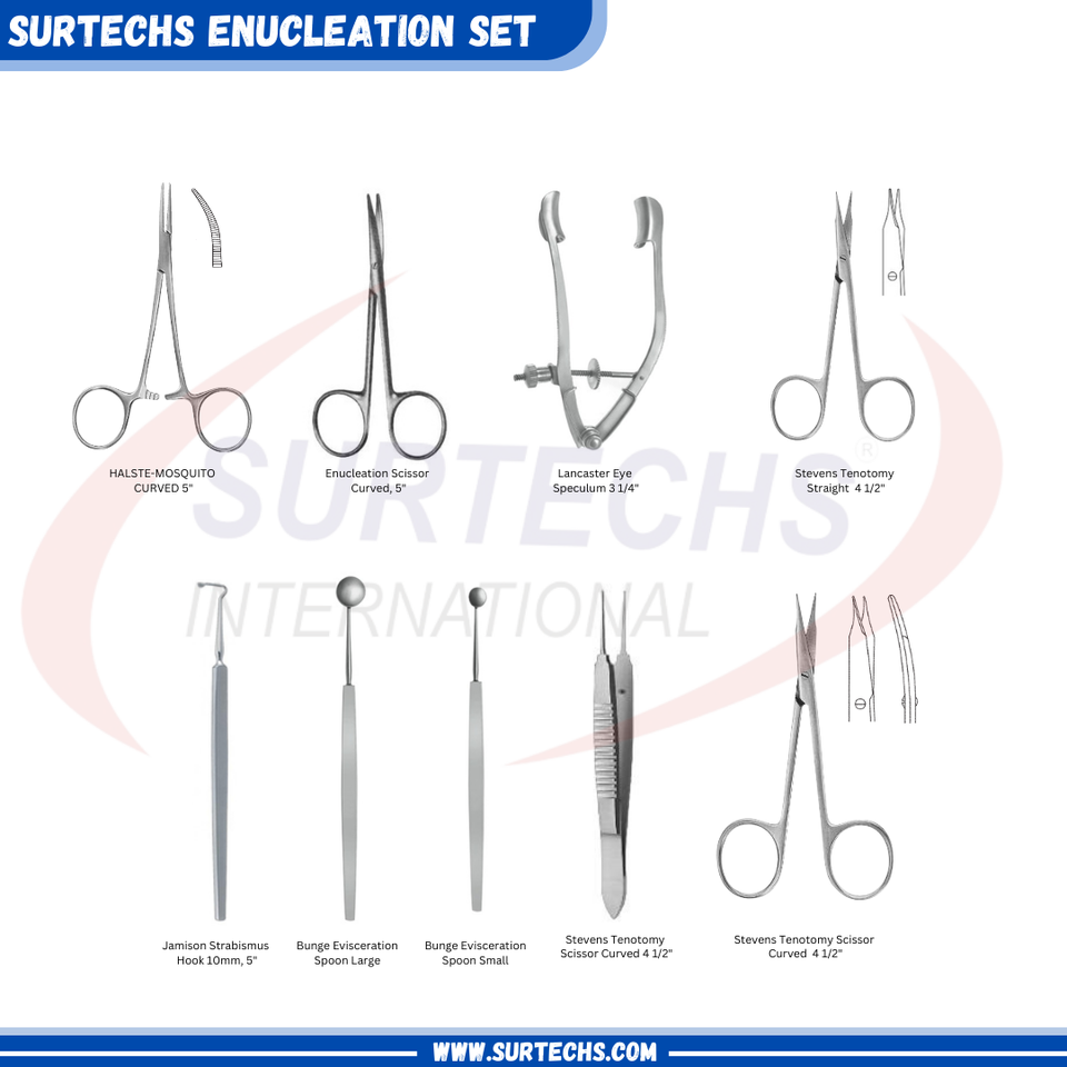Nouvel ensemble d'énucléation des yeux de qualité supérieure dans l'ensemble d'instruments de micro-chirurgie ophtalmique allemand Surtechs