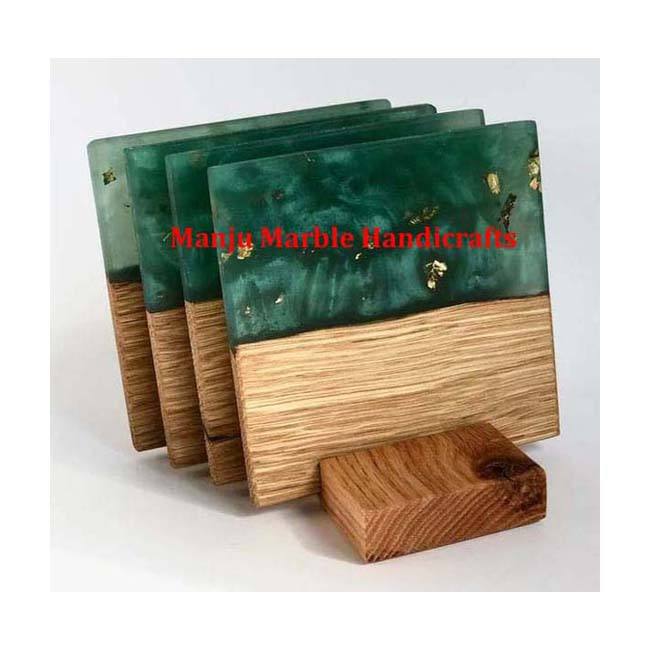 New Traditional Classic Fancy Modern Look Wood Coaster Set With Resin Material Square Shape Polished Shine For Home Kitchen Tool