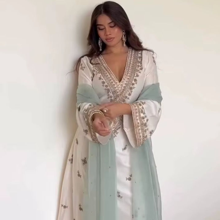 Nouvelle tenue traditionnelle de designer en soie naturelle lourde, broderie riche, travail de séquence, dupatta en organza de nylon, fête de mariage FATEMA
