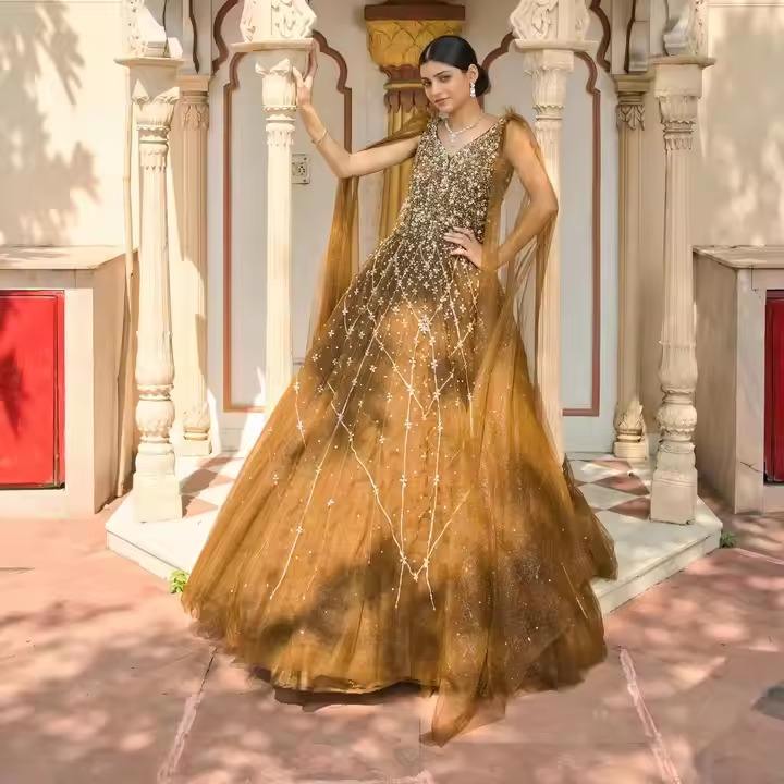 Nouveau Style traditionnel femmes papillon à manches longues robe en filet perlé pour les fêtes de fiançailles de mariage tenue de fête indienne