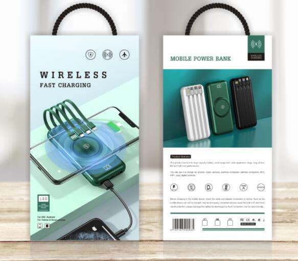 Nouvelle tendance, batterie externe portable intelligente de haute qualité et bon marché, avec câble intégré à 4 fils, 20000 mAh, charge sans fil pour téléphone portable