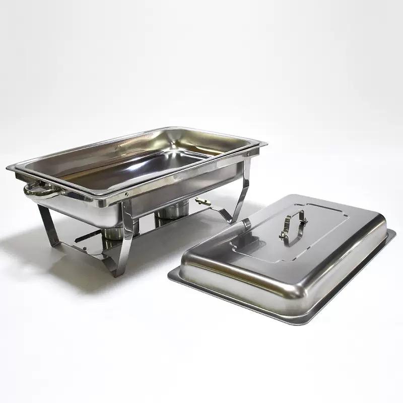 Nouvelle tendance : boîte chauffante alimentaire en acier inoxydable personnalisée, alimentée à l'alcool, capacité de 9 L, 4 ensembles, présentoir de buffet de restaurant, stock rapide
