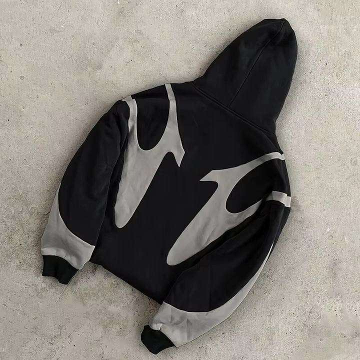 Nouvelle tendance hommes Street Style sweat à capuche zippé contraste flamme conception surdimensionné mode sweat