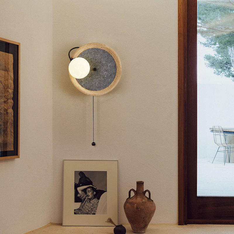 Lamp Body Material:Beige travertine+metal+glass