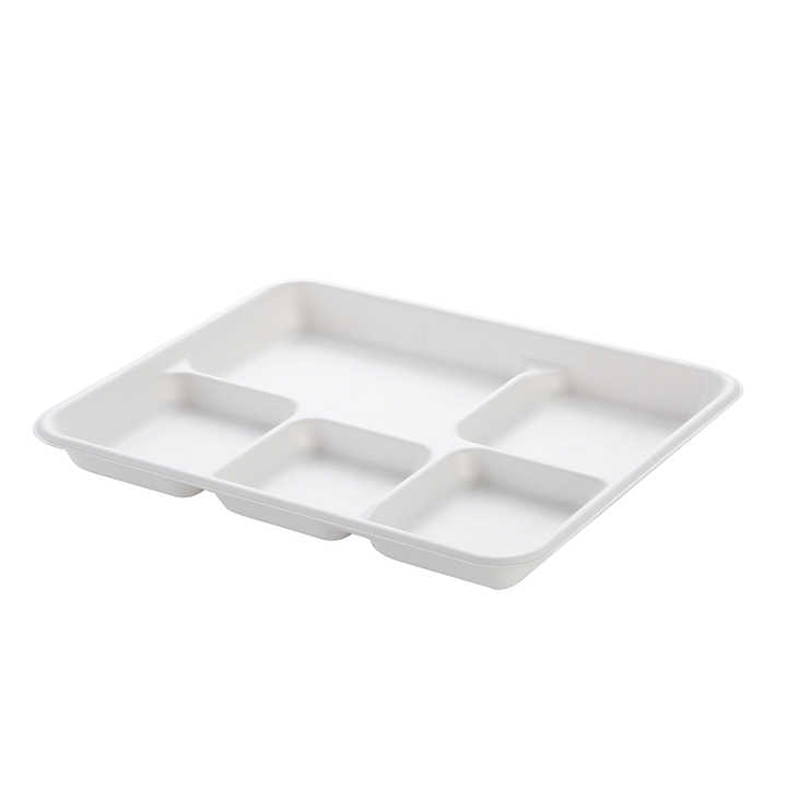 sugarcane bagasse tableware 5 compartment biodegradable lunch tray