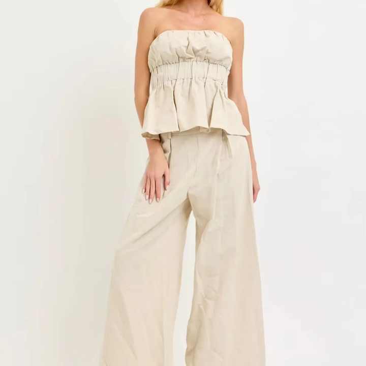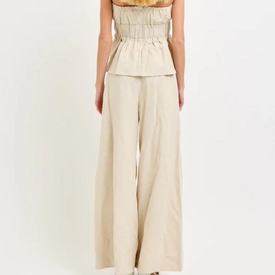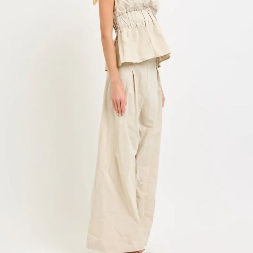 Nouvel ensemble tendance en lin sans dos, crop top et pantalon, pour femme, décontracté, respirant, en lin uni