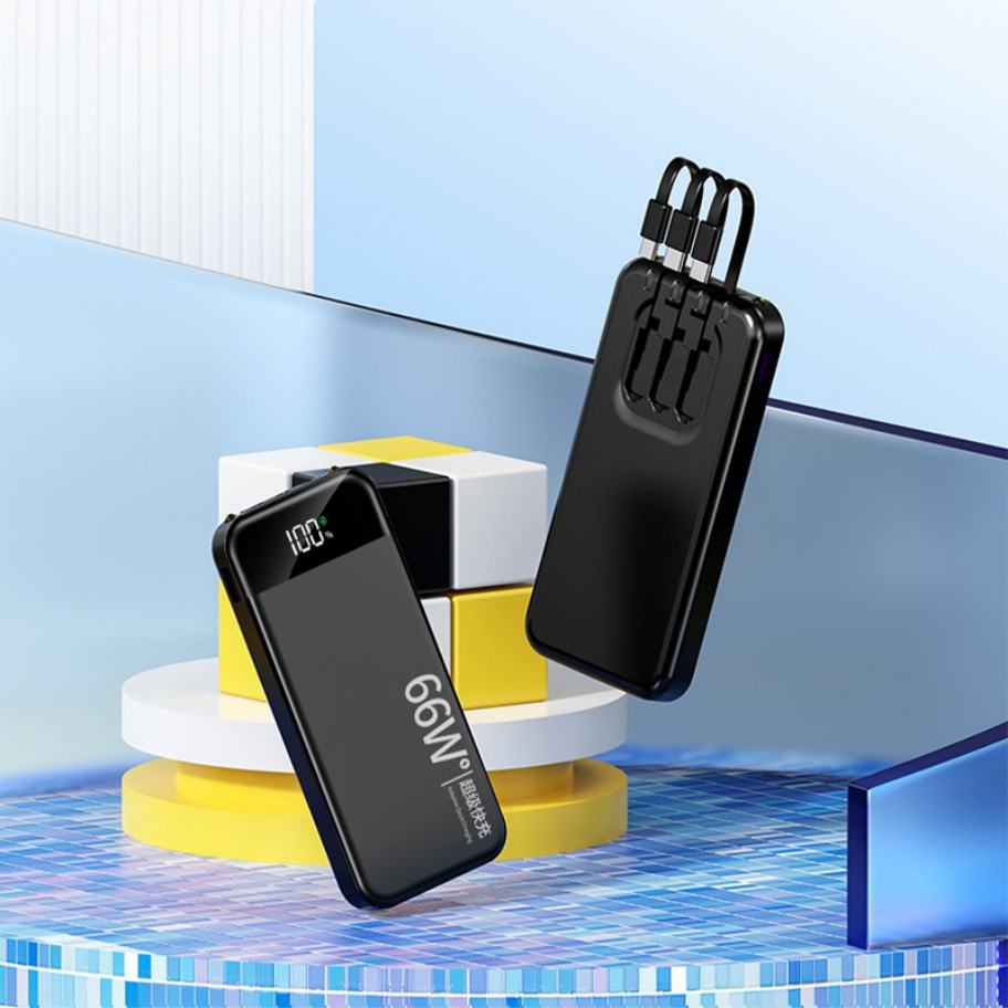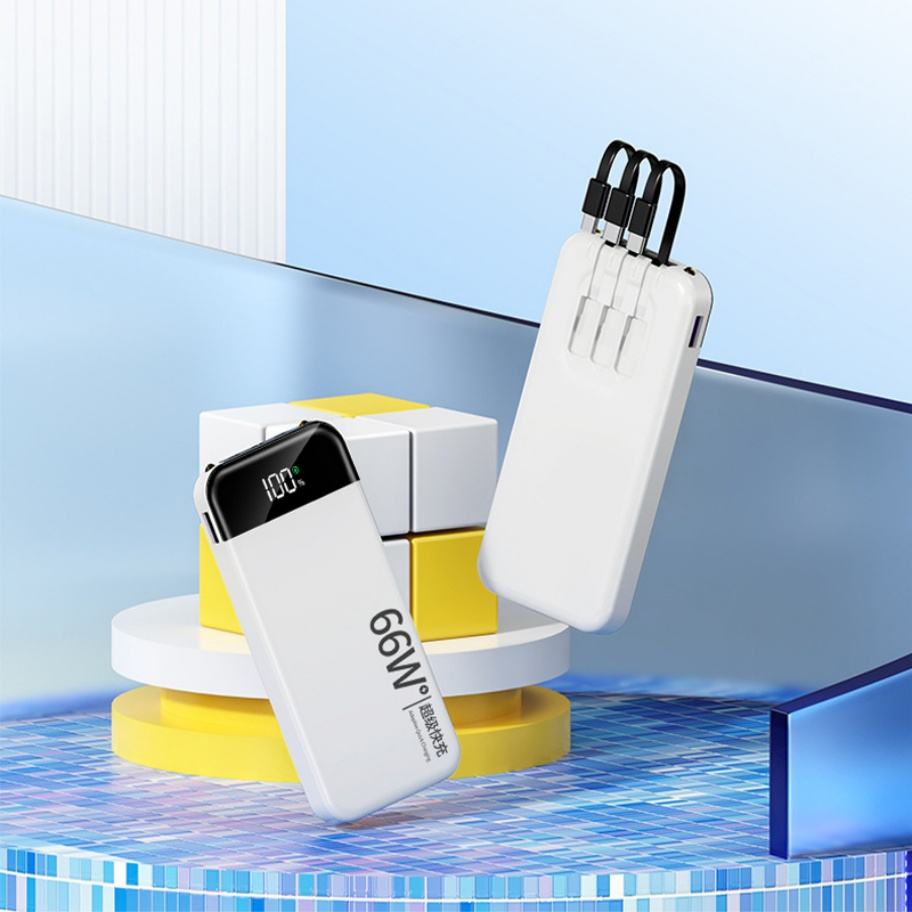 Nouvelle batterie externe tendance avec logo personnalisé, 10000 mAh, câble intégré, chargeur rapide 3-en-1, interface USB et écran LED