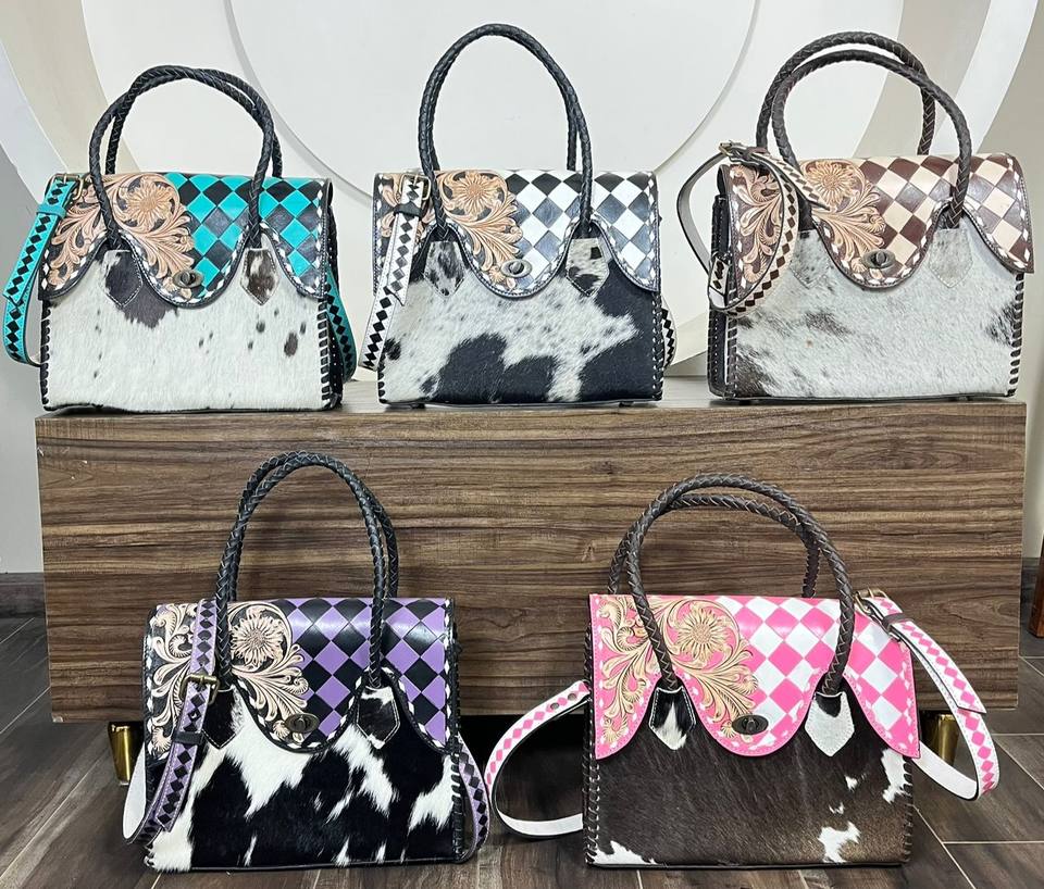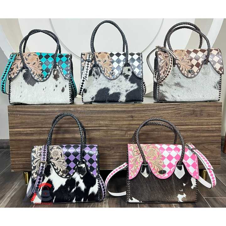Product name:Hand-Tooled Checkered Leather Tote Bag