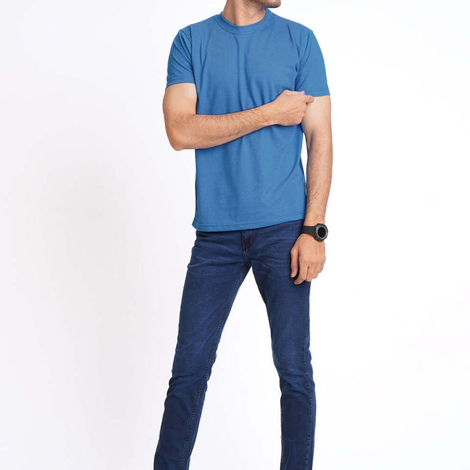 Nouveau style tendance, t-shirt pour homme en coton 100% à manches courtes, tricoté uni, respirant, séchage rapide, col rond, en solde