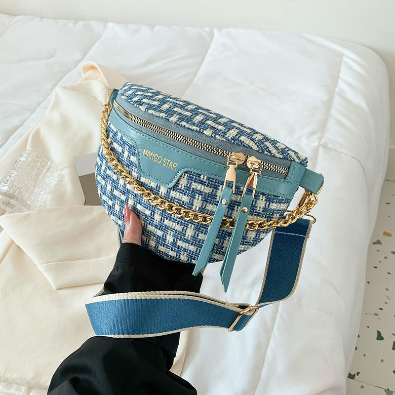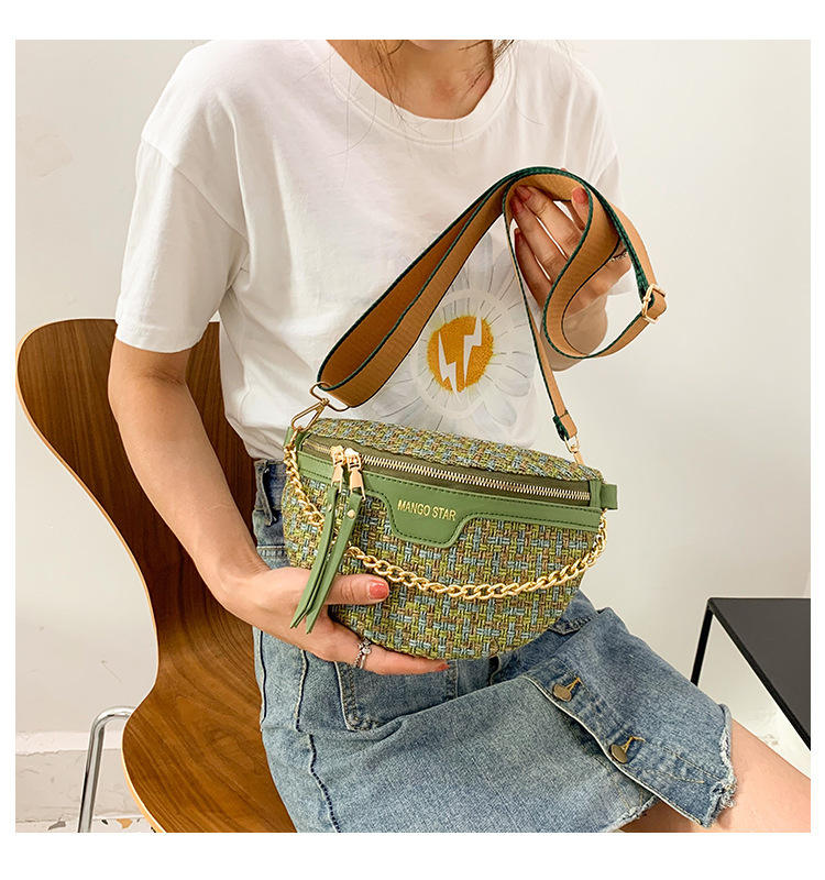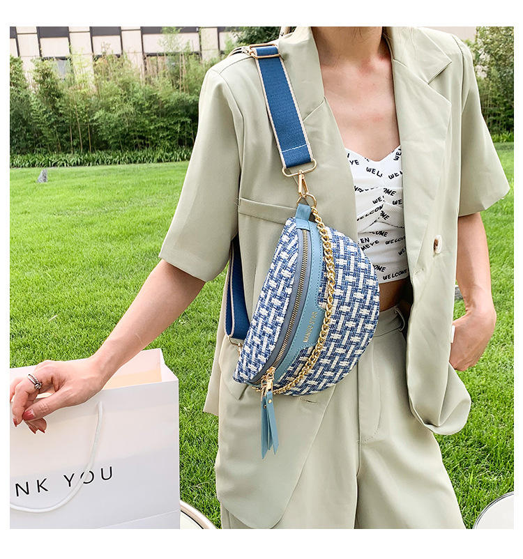 New Trending Summer New Woven Bag Diamond Lattice Fashion Ins Chain Leisure Small Waist Shoulder Chest Bag