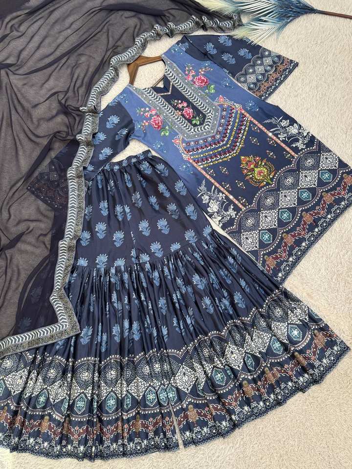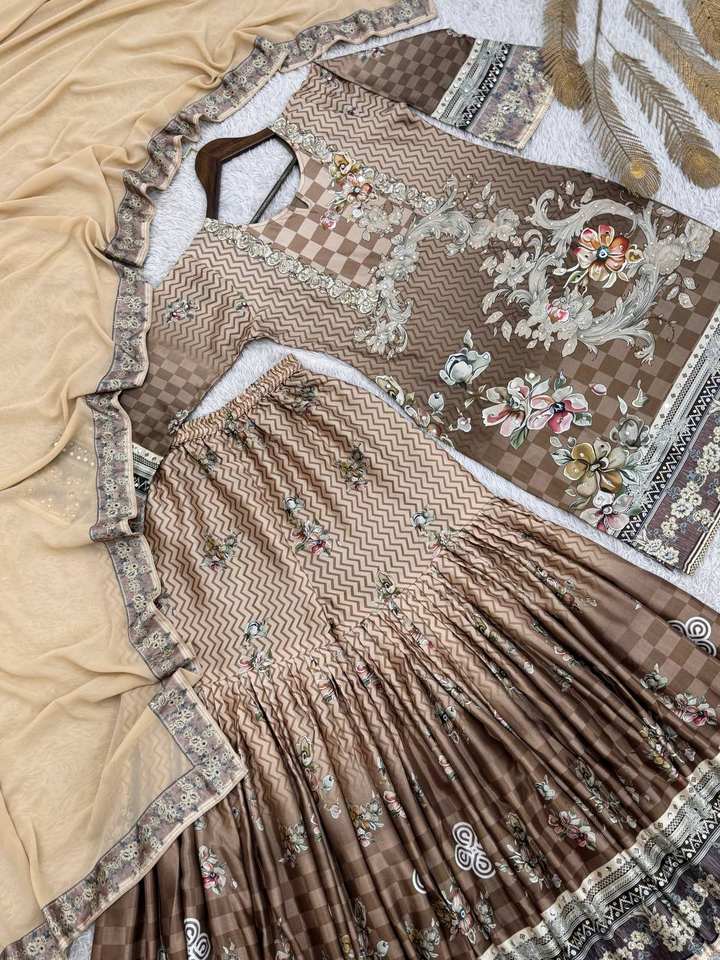Sharara Work:BEAUTIFUL DIGITAL PRINT WORK WITH REAL MIRROR AND STONE