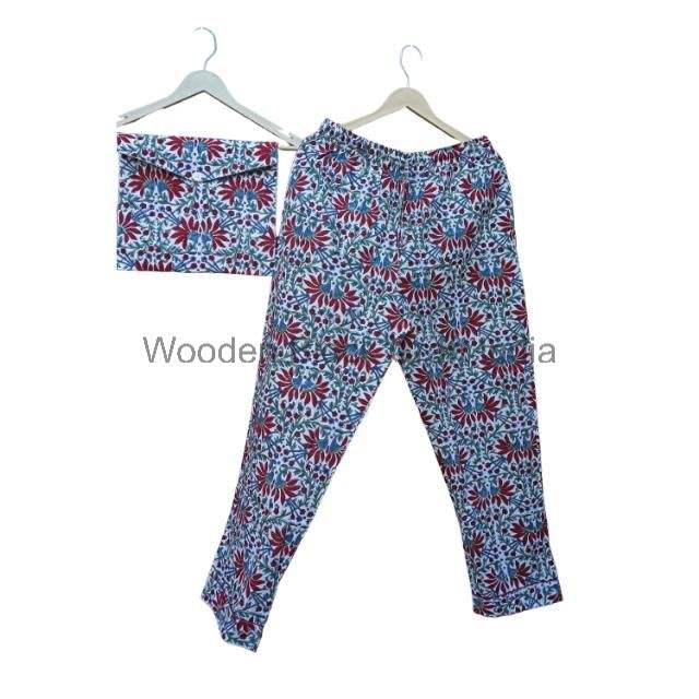 New Trending Unisex Cotton Long Pajama Set Hand Block Floral Printed Comfortable Sleepwear Night Suit Christmas Best Gift