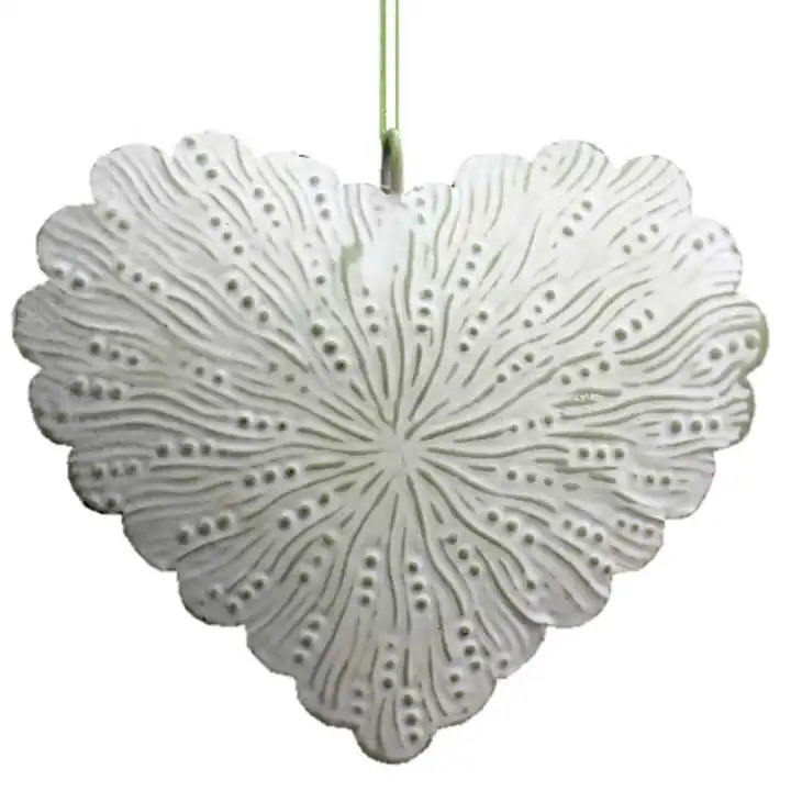 Nouvelle tendance blanc lavage fini à la main fer suspendu coeur décoration de noël ornements concepteur suspendu coeur