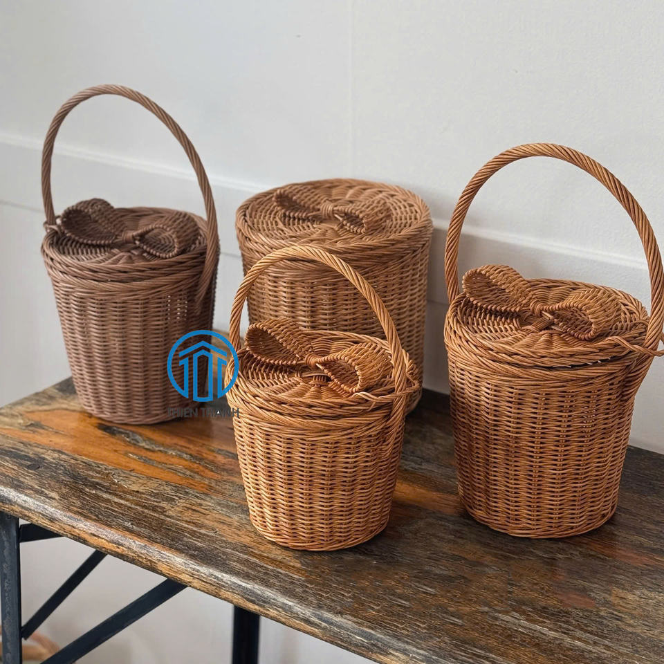 Nouveau panier à nœud en rotin en osier tendance avec poignée panier pour enfant et panier de rangement et décoration de cadeau de pique-nique du Vietnam