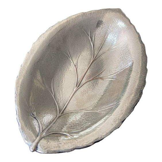 Plateau en aluminium fait à la main de nouvelles tendances avec une grande feuille en forme de nickel poli pour la cuisine Table à manger plat de service des aliments