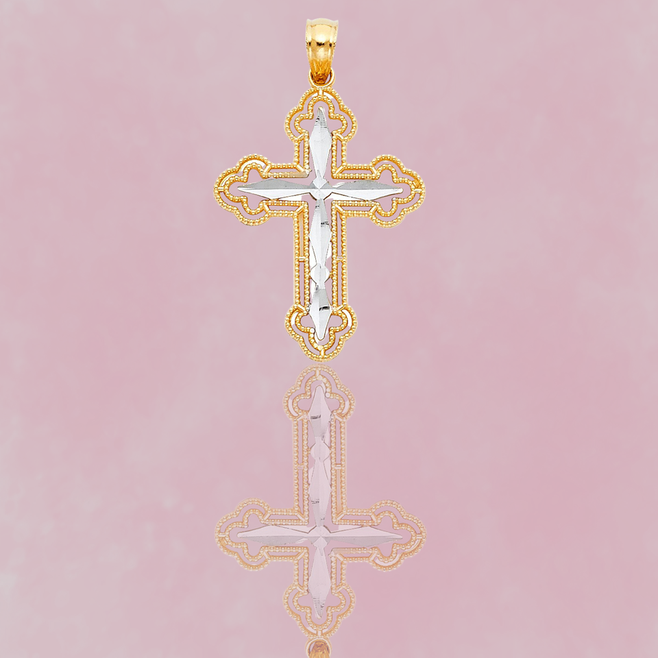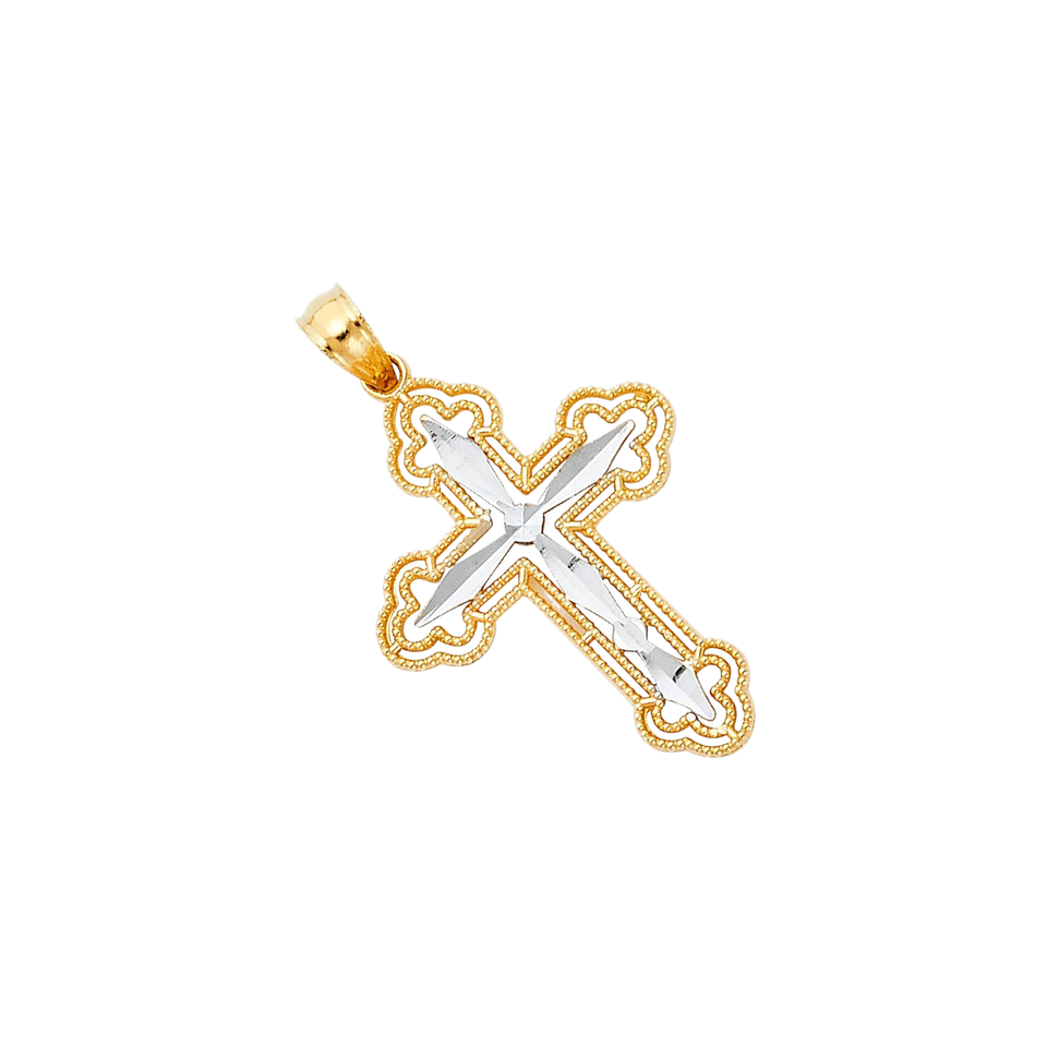 Nouveau à la mode 14k deux tons plaqué or religieux croix charme Vintage Design catholique patrimoine foi bijoux pour enfants pour